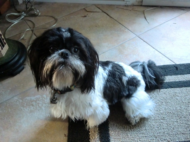 black and white Shih Tzu male with white blaze and a playful, spunky,