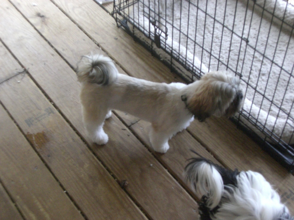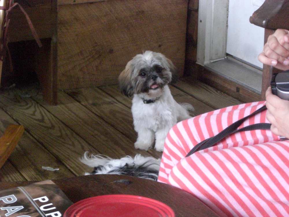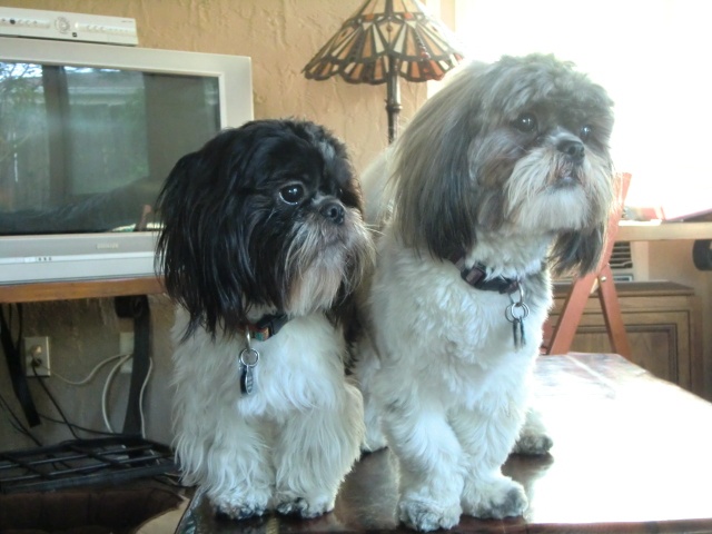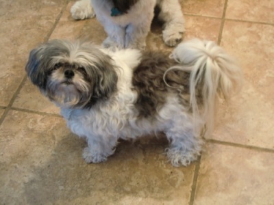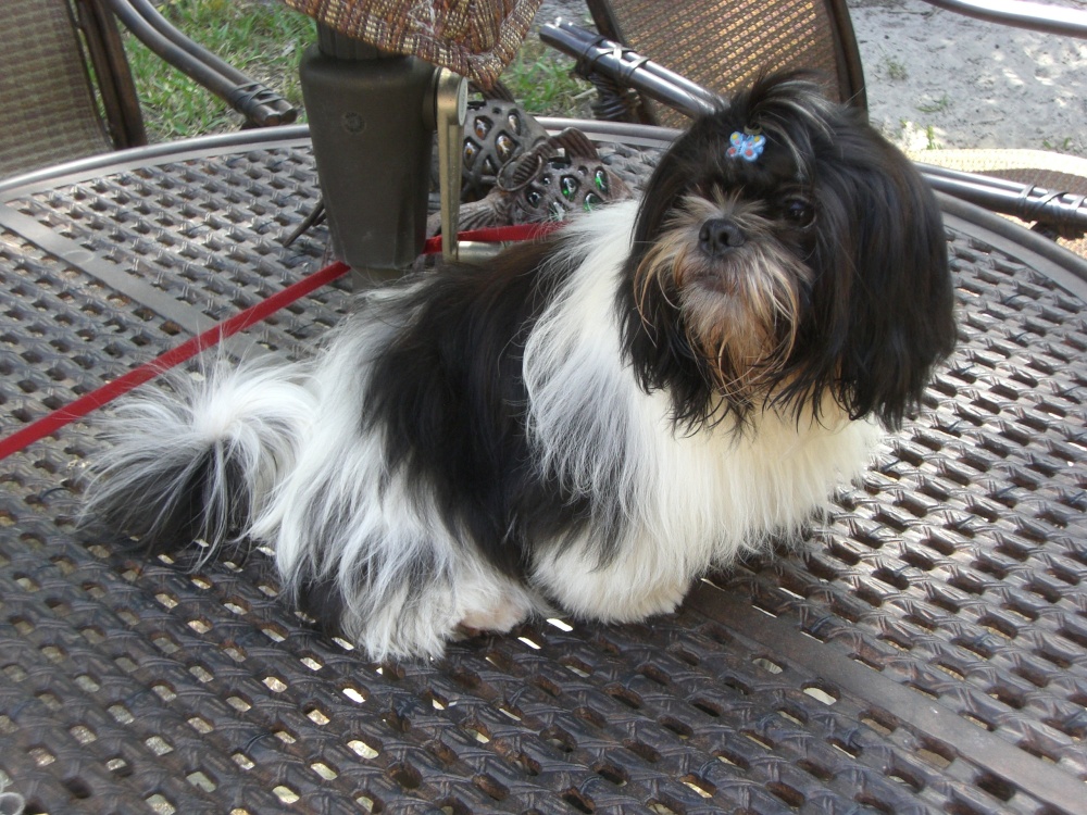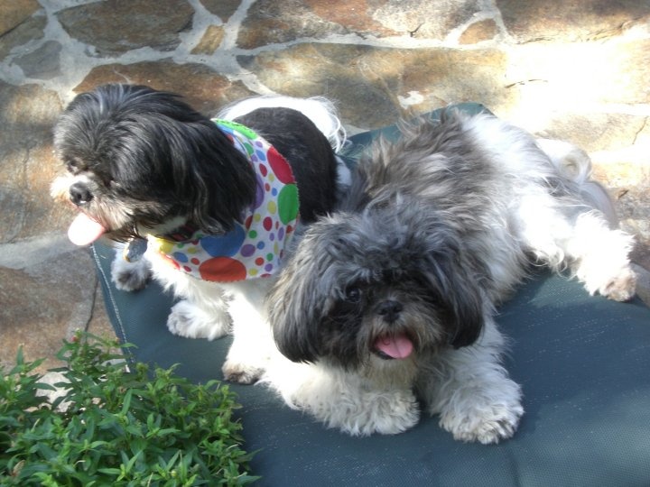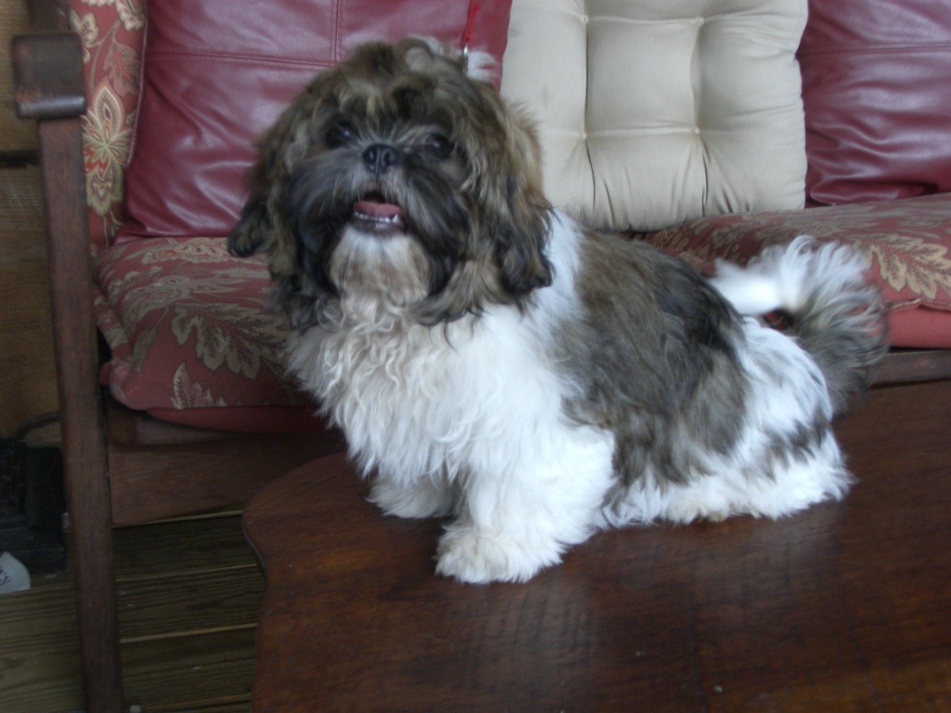 Middle: Panzy- 9 year old spayed female part Shih Tzu/part Pekingese Front: Panda (AKA Pandamonium, Panda Man)- a 7 yr old AKC/CKC male Shih Tzu- a proven "stud" with three litters (14 puppies) on his resume