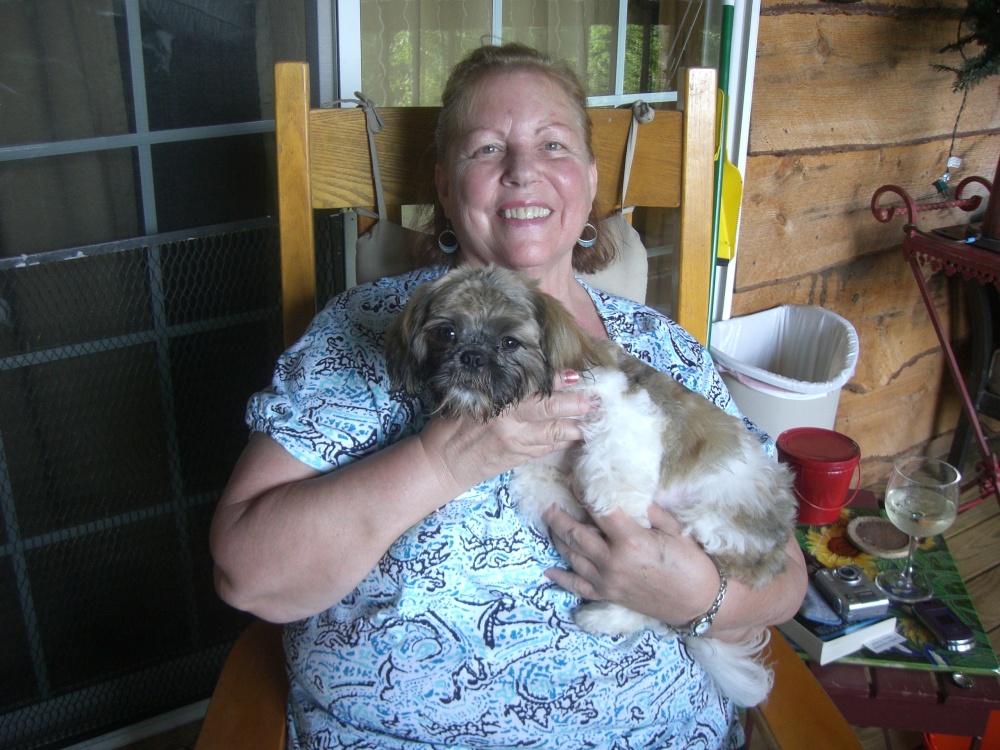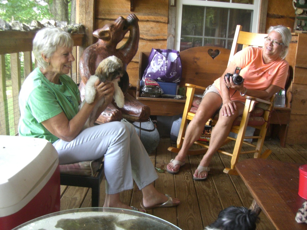 ![]() Ginger with Diana and Linda Stevens our cabin porch on August 11th, 2010 |